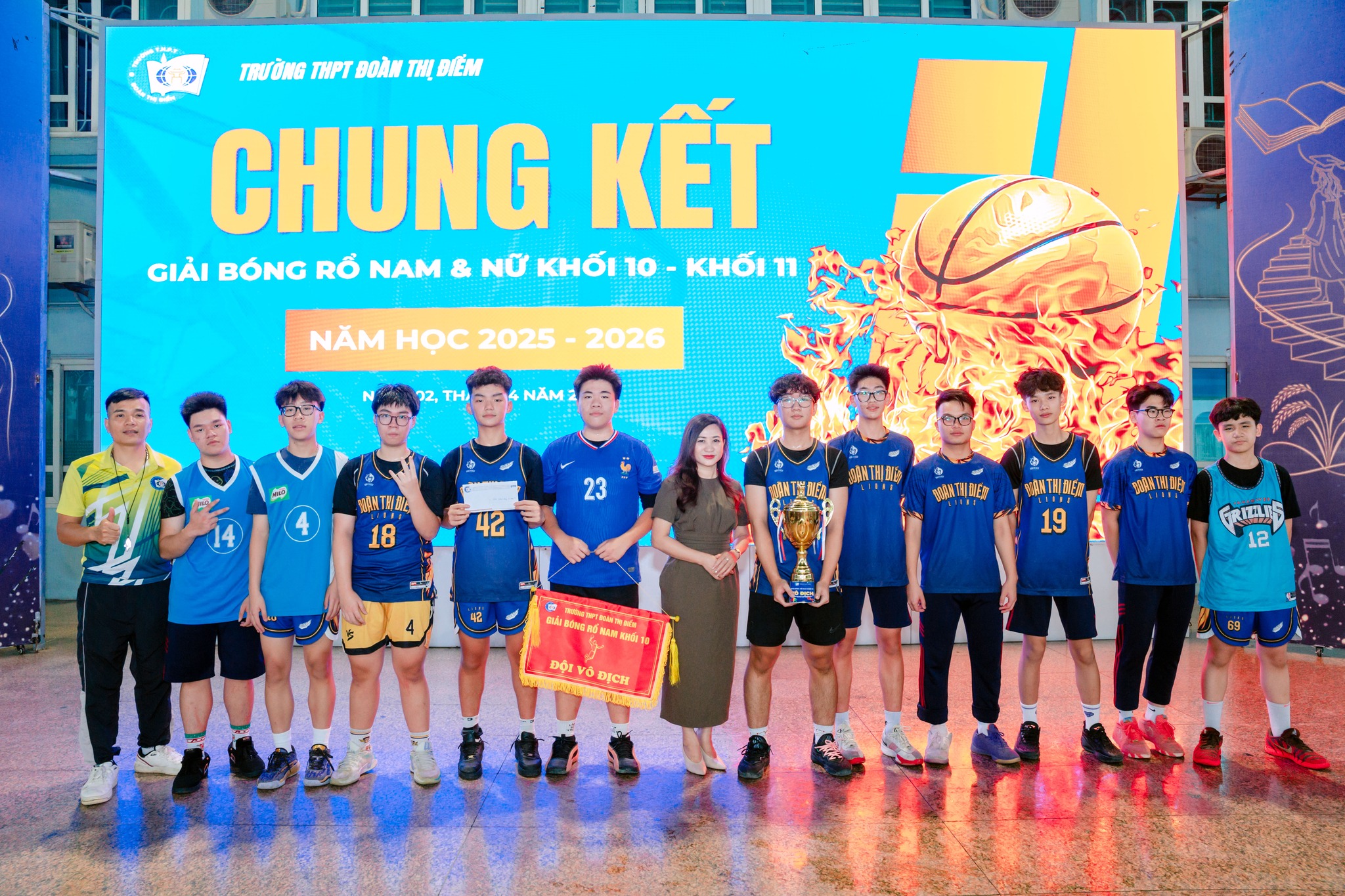 Sau những ngày thi đấu sôi nổi, kịch tính và đầy cảm xúc, giải bóng rổ học sinh khối 10, 11 của Trường THPT Đoàn Thị Điểm đã chính thức khép lại với những trận chung kết mãn nhãn, để lại nhiều dấu ấn khó quên trong lòng thầy cô và học sinh.