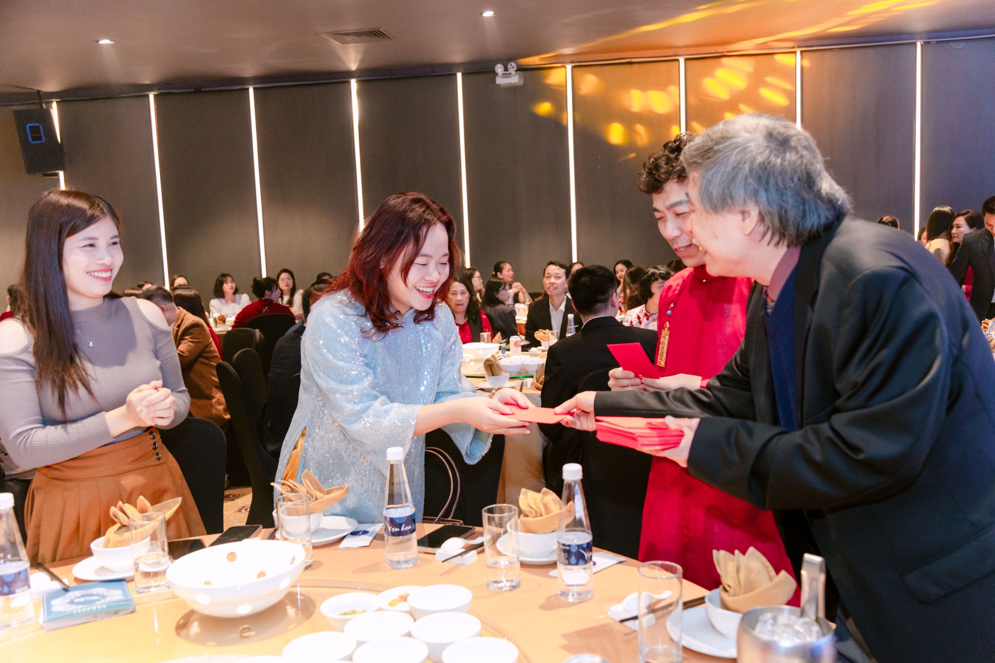 Khoảnh khắc ấm áp và ý nghĩa của buổi gặp mặt là nghi thức khai tiệc và lì xì đầu xuân của PGS/TS – NGƯT thầy Đặng Quốc Thống – Chủ tịch Hội đồng Trường. Những phong bao đỏ trao tay không chỉ mang theo lời chúc an khang đầu năm, mà còn là biểu tượng của sự gắn bó, sẻ chia và niềm tin trao gửi tới mỗi thành viên trong đại gia đình Đoàn Thị Điểm.