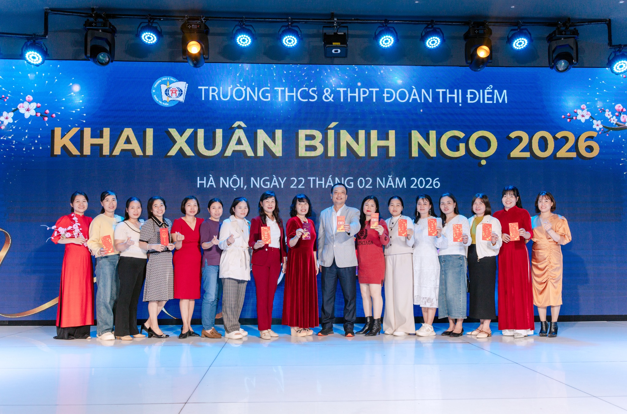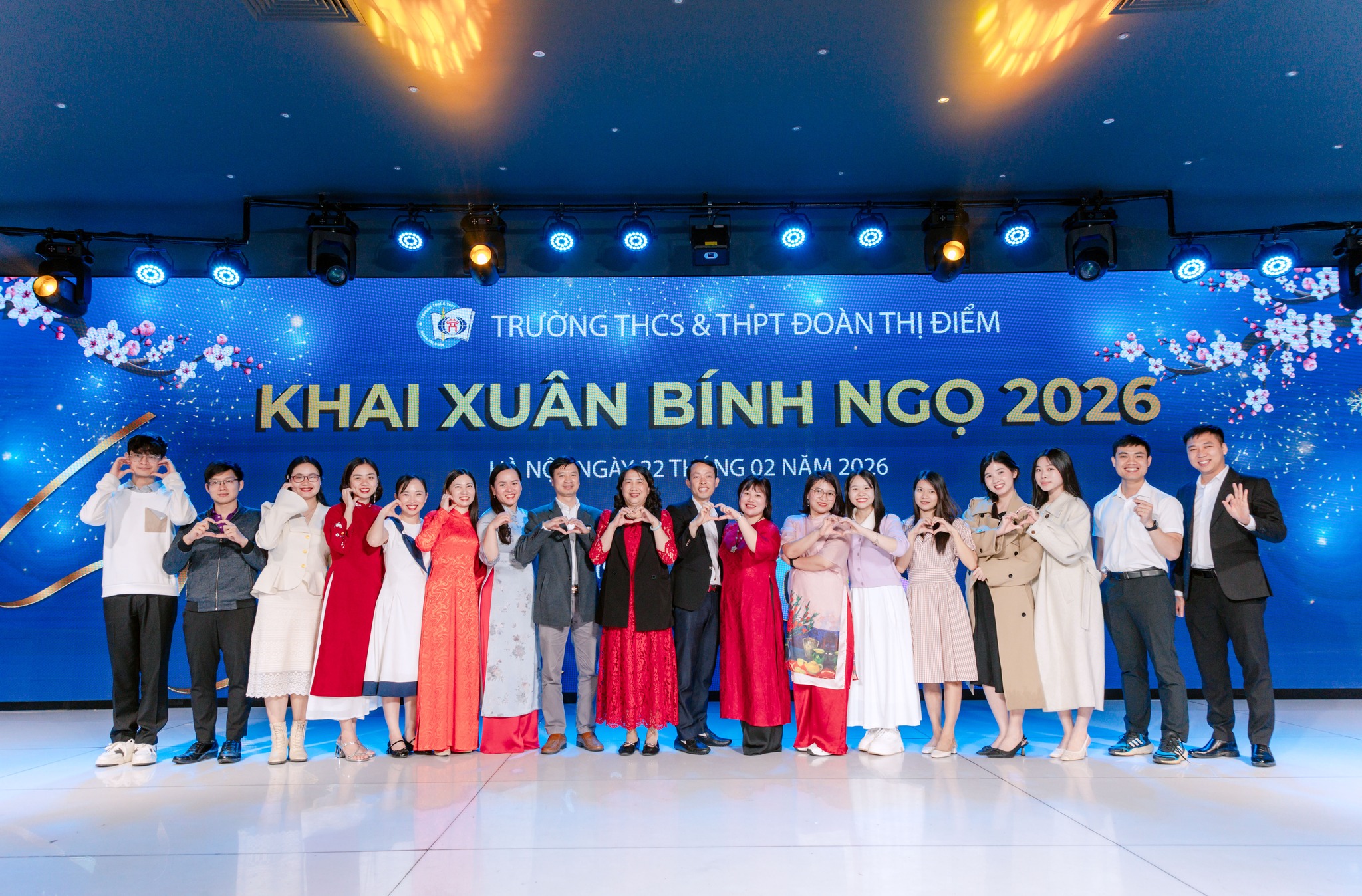 Trong không khí rạng rỡ của những ngày đầu năm mới, đại gia đình Trường THCS & THPT Đoàn Thị Điểm đã cùng hội tụ trong Tiệc Khai Xuân 2026 với sự tham dự của hơn 500 cán bộ, giáo viên, nhân viên, các thế hệ cựu giáo chức và đại diện Cha mẹ học sinh nhà trường – những người đã, đang và sẽ luôn đồng hành bền bỉ trong hành trình phát triển của Đoàn Thị Điểm.