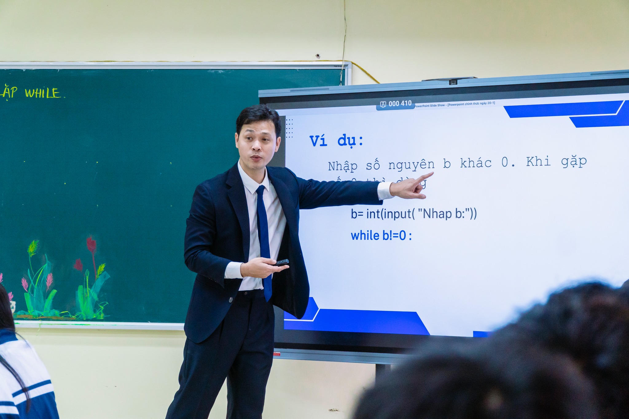 Ở tiết “Câu lệnh lặp while” (Tin học 10), thầy Quốc Phương đưa học sinh bước vào thế giới lập trình bằng sơ đồ khối và trò chơi mô phỏng. Những dòng lệnh khô khan trở nên trực quan, sinh động, giúp học sinh hiểu sâu bản chất vòng lặp, tránh lỗi “vòng lặp vô hạn” và hình thành tư duy logic – kiên trì của người học công nghệ.