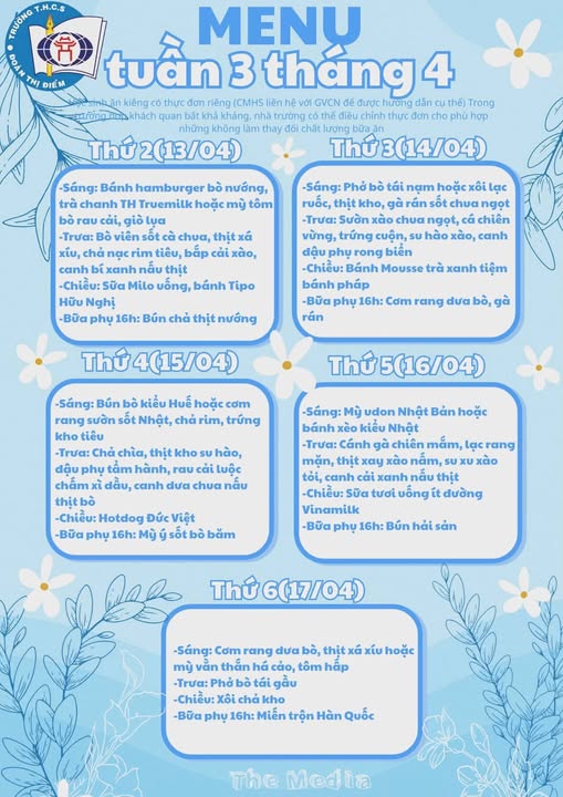 Một tuần học không có gì quá đặc biệt… ngoại trừ việc mỗi ngày đi học vẫn luôn có đồ ăn ngon chờ đón chúng ta. Thực đơn đã sẵn sàng, mời các DTDers “check list” ngay nhé!