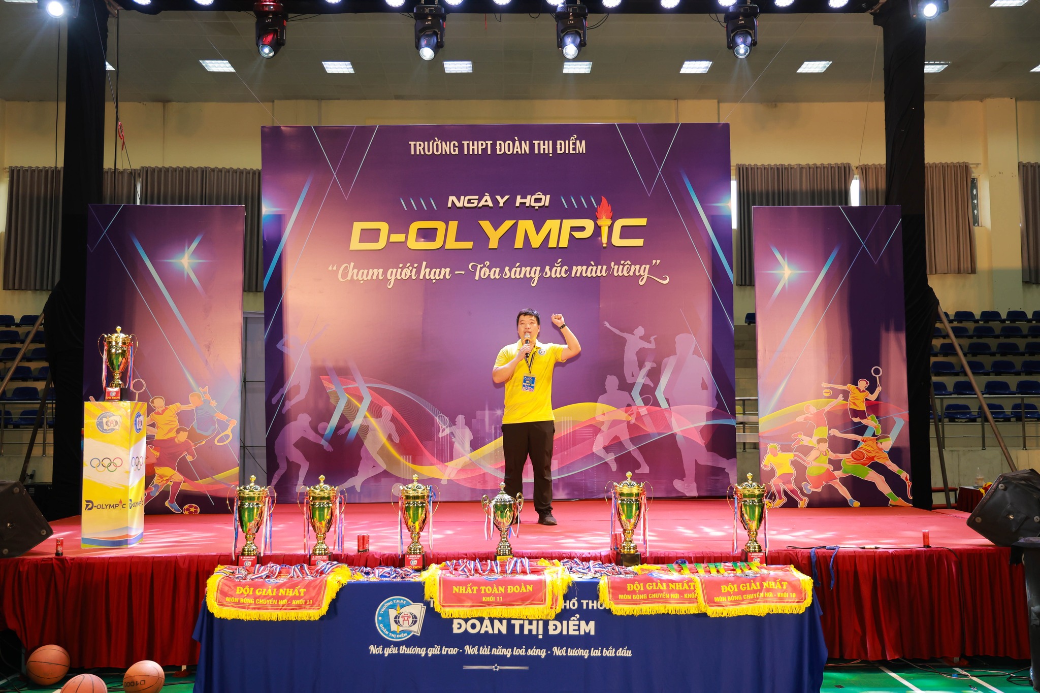 Ngày hội thể thao lớn nhất trong năm của Trường THPT Đoàn Thị Điểm đã chính thức diễn ra tại Nhà thi đấu Hoài Đức – nơi hàng nghìn trái tim cùng hòa chung nhịp đập của tinh thần thể thao và khát vọng chiến thắng – nơi mà các Dtder không chỉ rèn luyện thể chất, mà còn là cơ hội để các bạn trang bị những phẩm chất cần có của công dân toàn cầu: Kiên trì, Chủ động, Trách nhiệm và Bản lĩnh vượt qua thử thách khai phá tiềm năng.