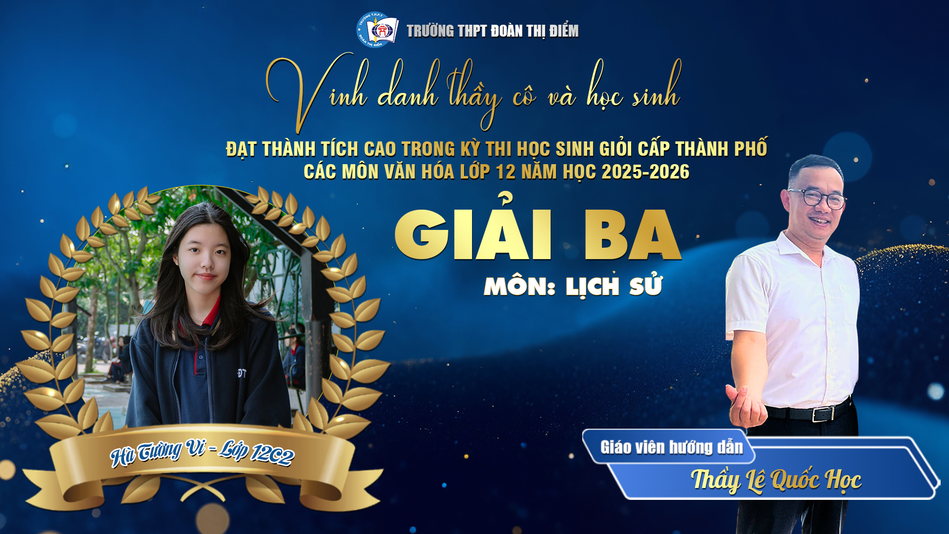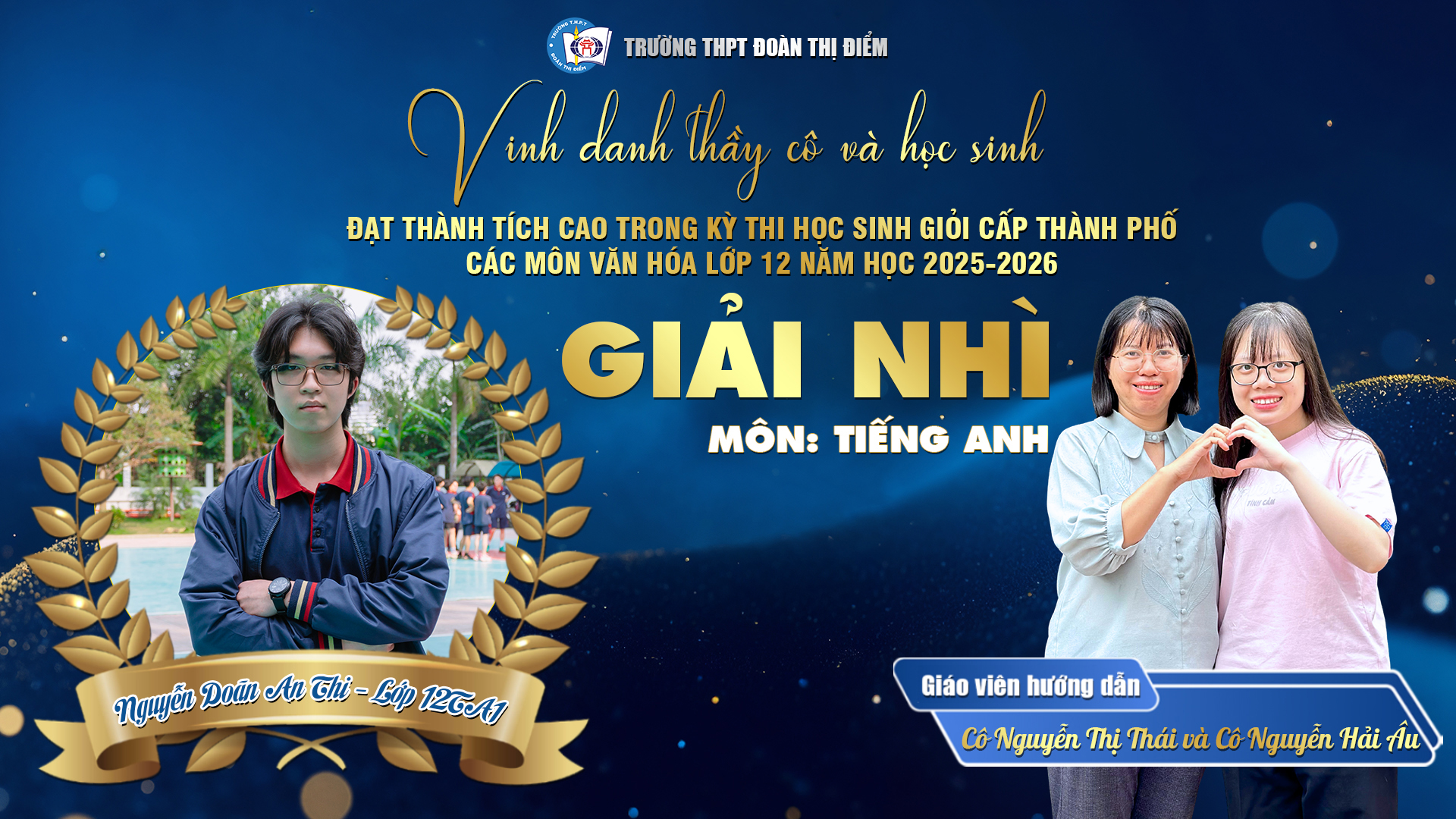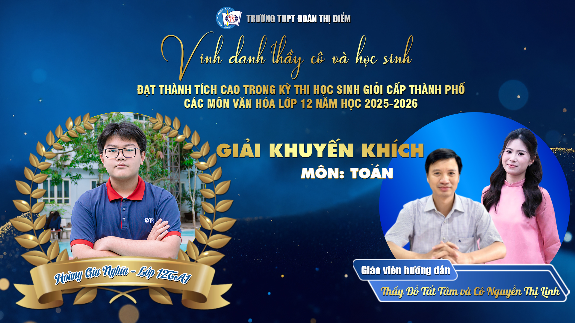 Với 1 Giải Nhất, 1 Giải Nhì, 6 Giải Ba và 6 Giải Khuyến khích trong kỳ thi HSG Thành phố năm học 2025 – 2026, thầy và trò THPT Đoàn Thị Điểm đã cùng nhau vẽ nên một bức tranh tràn đầy “sắc màu chuyển động” – nơi mỗi học sinh không ngừng chạm tới giới hạn của chính mình để đổi thay và tỏa sáng.