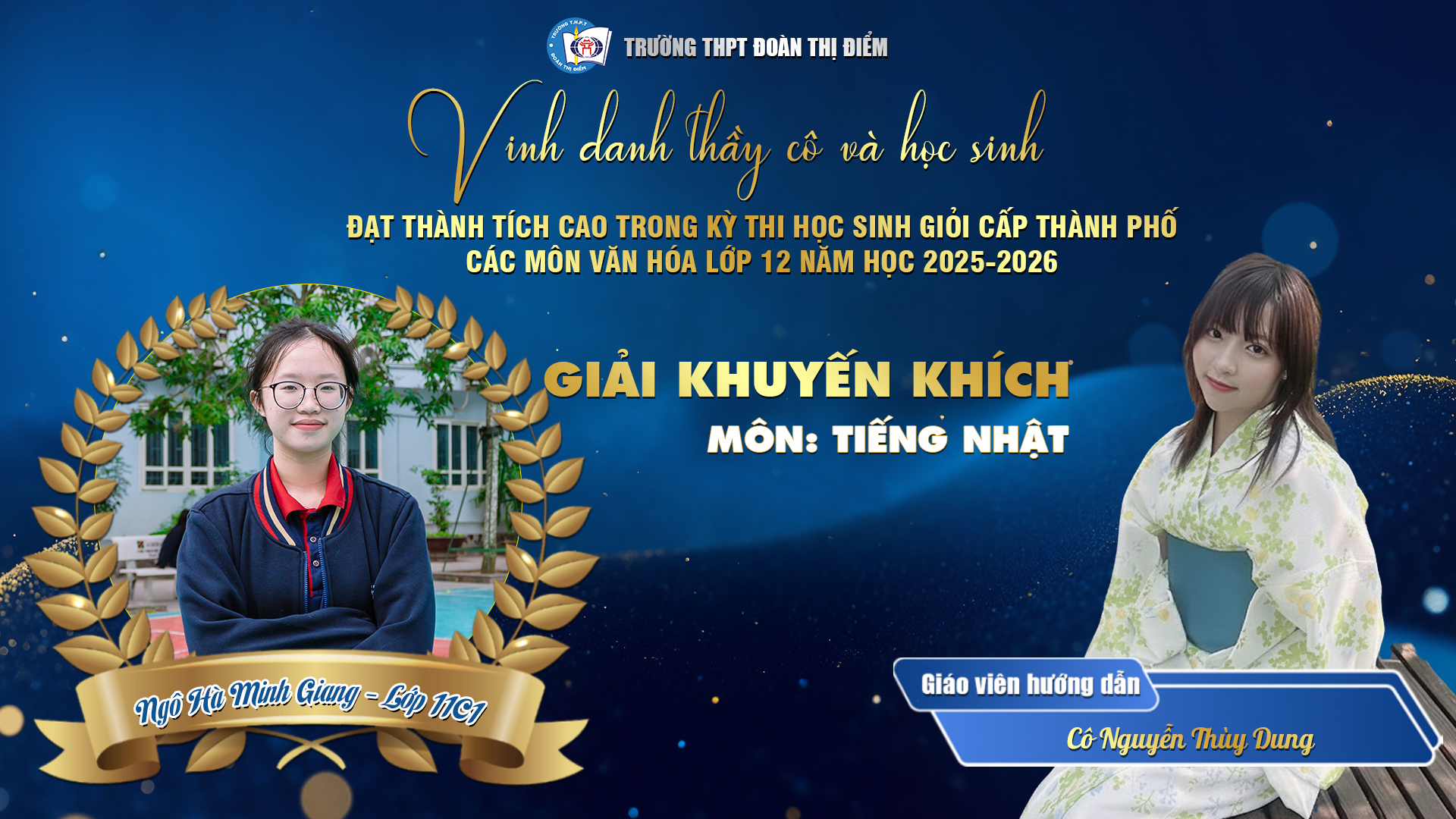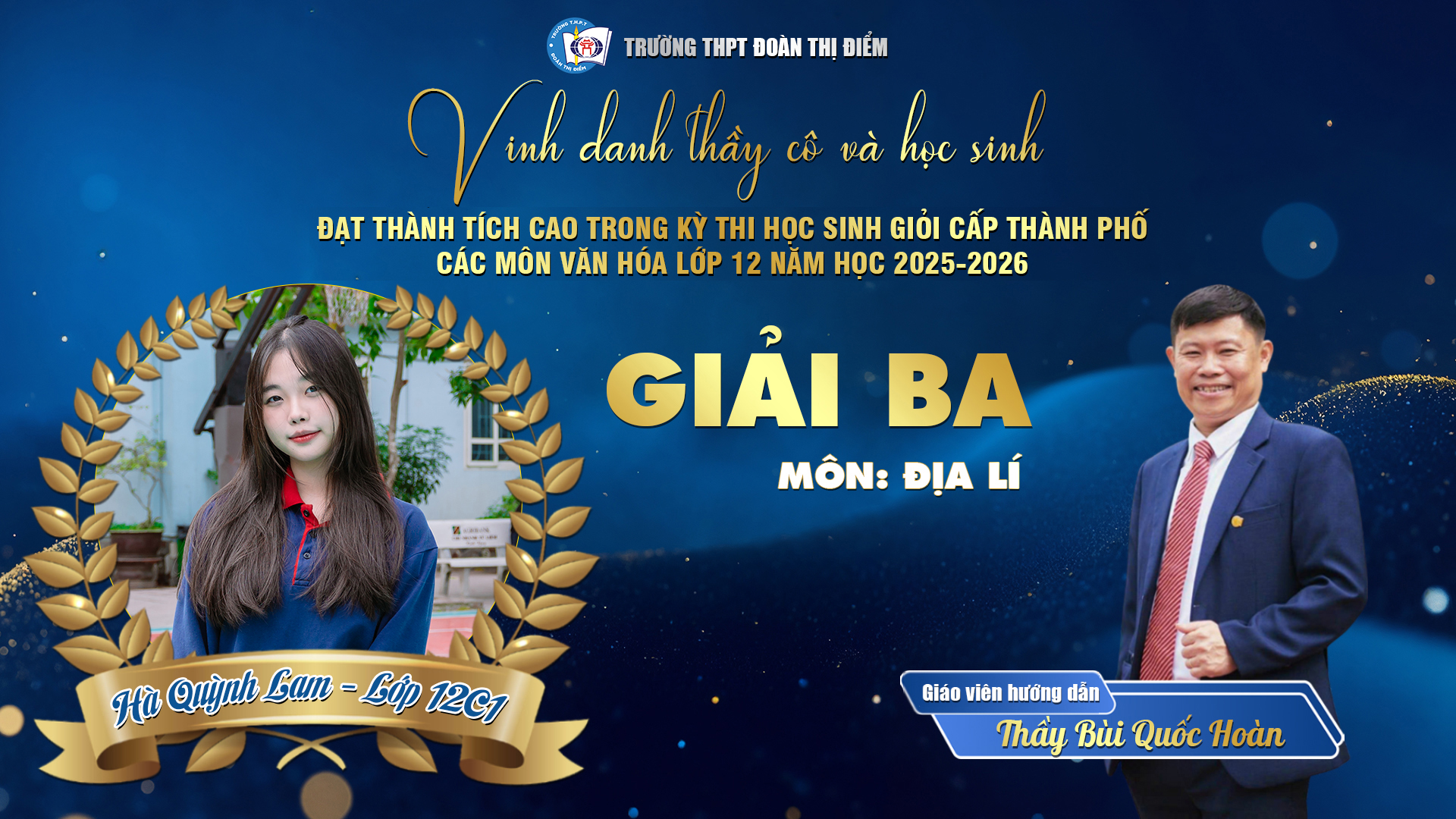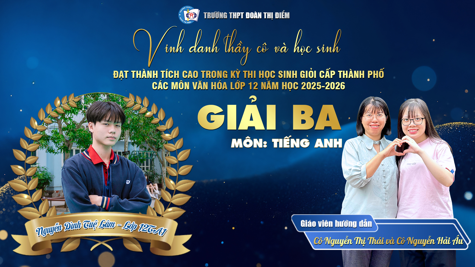 Với 1 Giải Nhất, 1 Giải Nhì, 6 Giải Ba và 6 Giải Khuyến khích trong kỳ thi HSG Thành phố năm học 2025 – 2026, thầy và trò THPT Đoàn Thị Điểm đã cùng nhau vẽ nên một bức tranh tràn đầy “sắc màu chuyển động” – nơi mỗi học sinh không ngừng chạm tới giới hạn của chính mình để đổi thay và tỏa sáng.