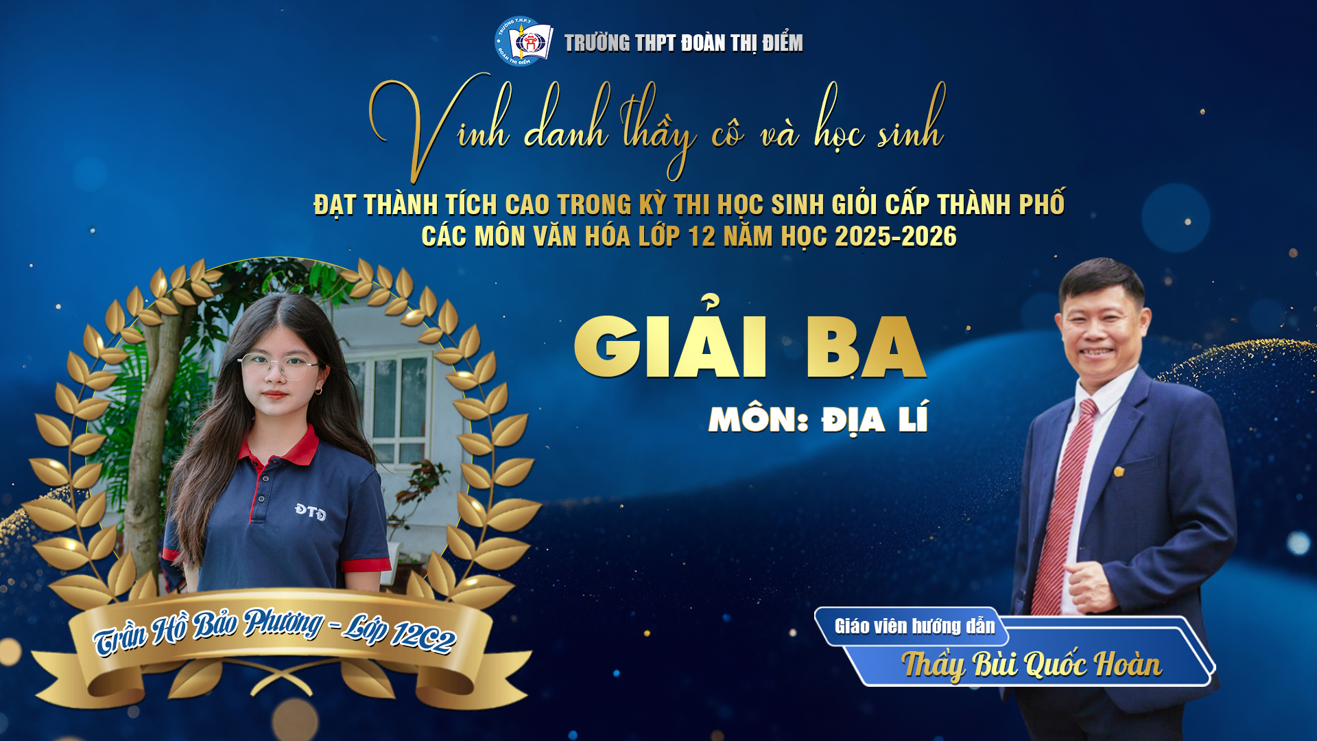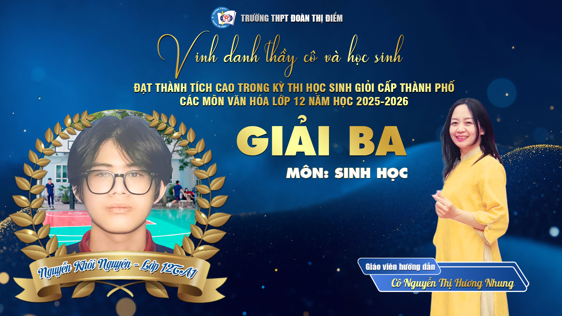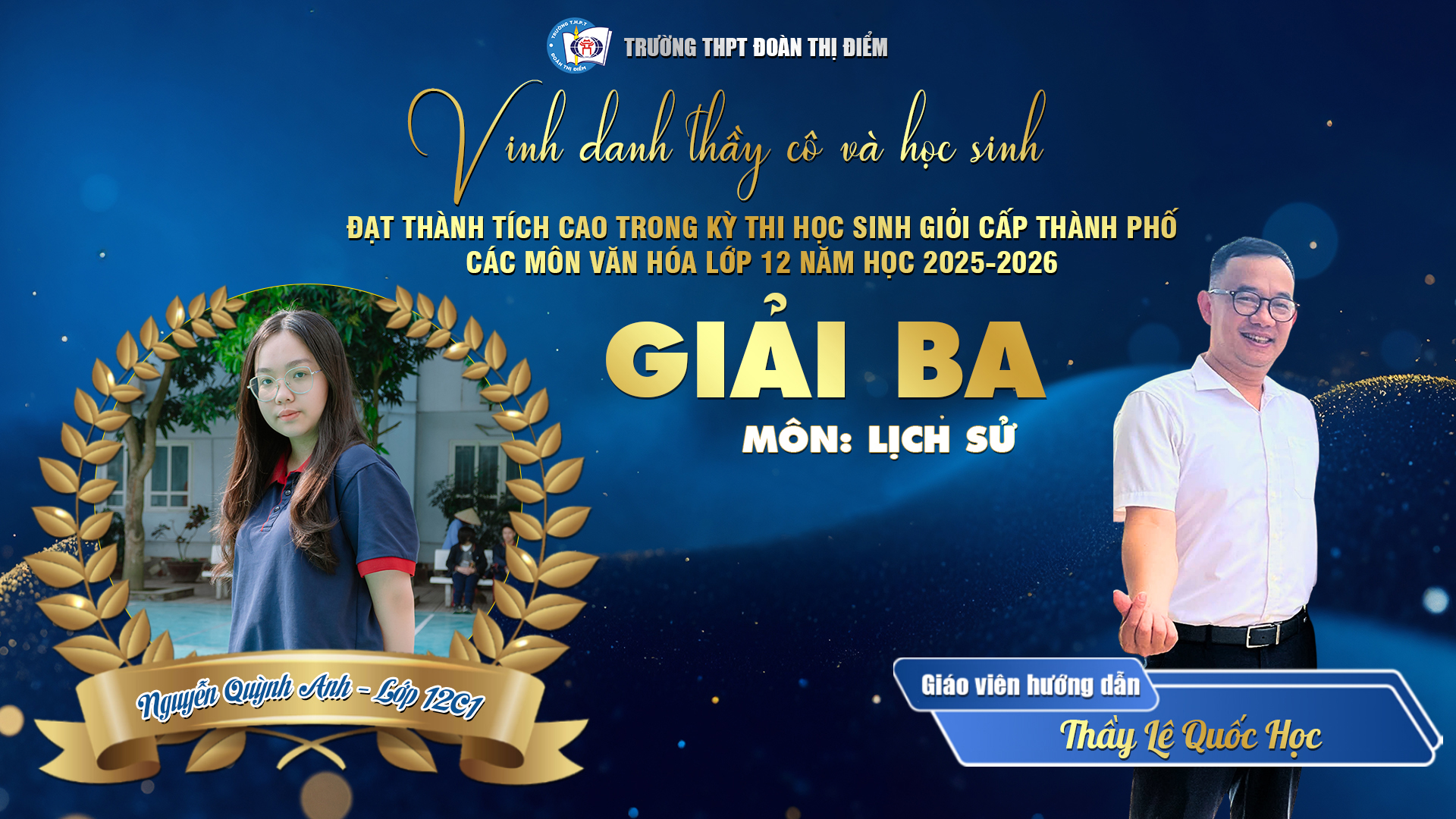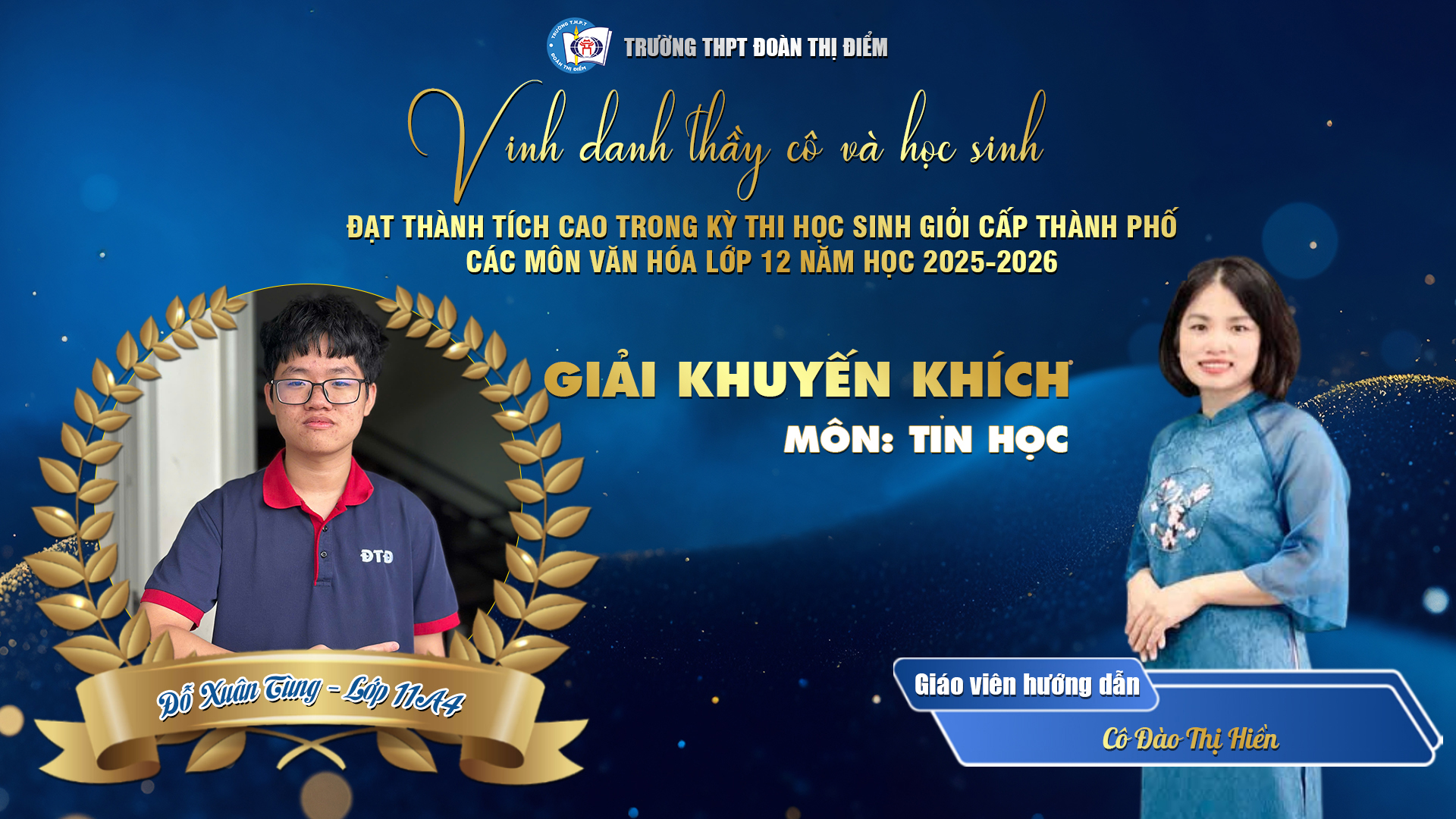 Đặc biệt, học sinh Đoàn Vũ Tố Quyên – lớp 12C1 đã xuất sắc giành Giải Nhất môn Ngữ văn, khẳng định tài năng – bản lĩnh – cảm xúc – khát vọng vươn lên không ngừng của tuổi trẻ DTDer!